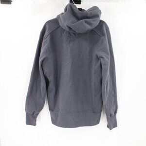 Comfortable gray hoodie with front zipper. Features a hood and pockets. Ideal for casual wear.