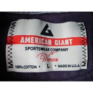 Tag details: "American Giant Sportswear Company Women" branding on neck label