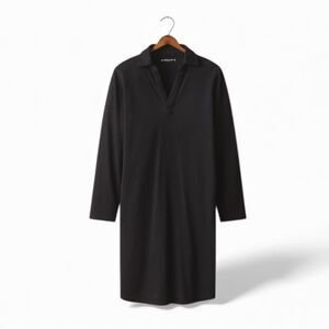 American Giant Polo Shirt Dress Womens Medium Black Popover Collared Long Sleeve Cotton Minimalist NEW
