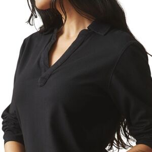 American Giant Polo Shirt Dress Womens M Black Popover Long Sleeve Cotton NEW