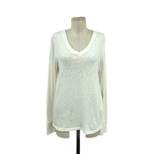 American Giant Premium Slub V-Neck Tee Shirt Top Long Sleeve Cream Size Small