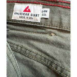 American Giant The Roughneck Stretch Canvas Pants Olive Green 34x32 34W 32L USA