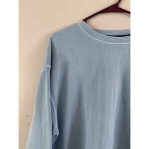 American Giant Sky Blue Womens Vintage Wash Relaxed French Terry Crewneck Sweatshirt. Pullover style with cuffed hem and sleeves with a worn in look. Oversized, comfy fit!