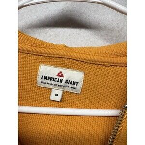 American Giant Waffle Knit Full Zip Hoodie Womens Medium USA Made Yellow Heavy