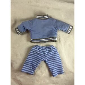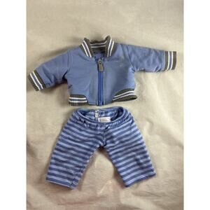 This now long-retired American Girl Bitty Baby twin boy doll comes as found, wearing a tagged Bitty Baby two-piece knit full zip track jacket and striped pants. This preowned doll is overall clean, free of chew marks, discolorations and odors with a few signs of normal use. The outfit is showing some wear and soiling from use, as shown. Any attempt at cleaning the outfit is being left to customer. See photos.