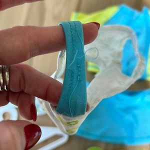 American Girl Bathing Suit and matching Rash Guard and Board Skirt. Flip Flops and Hangers included. ***Stitching coming out of Bathing suit shoulder piece ( too cute to not include)