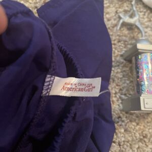 The product is a retired American Girl Doll 2001 Purple GYMNASTICS Warm Up Suit and Trophy. This set includes a purple outfit specifically designed for a girl doll, representing the brand American Girl. The warm-up suit and trophy are part of the clothing set that was manufactured in 2001, adding a nostalgic touch to the collection. Perfect for collectors or those looking to complete their American Girl Doll wardrobe.