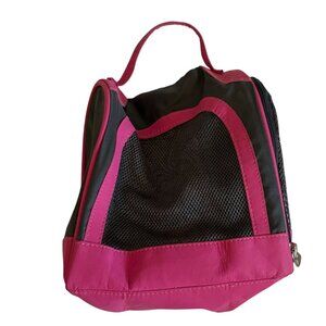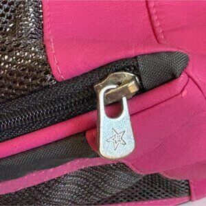 4. Pink/black pet carrier. Zippered closure. No flaws