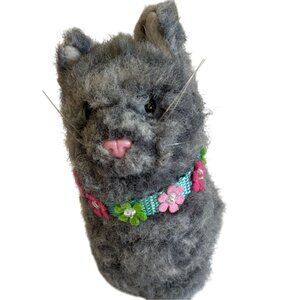 1. Praline The gray tabby cat. Her hair is not as fluffy--she is older(belonged to my now 16 year old daughter) she has some scuffs on the bottom of her--legs do not move--she is only sitting