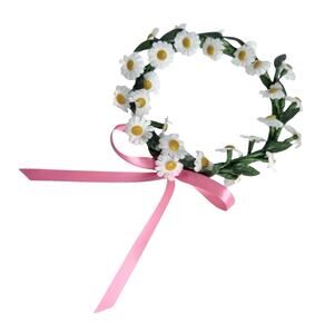 Wreath: White Daisy Wreath With Pink Ribbon - NEW In Package!