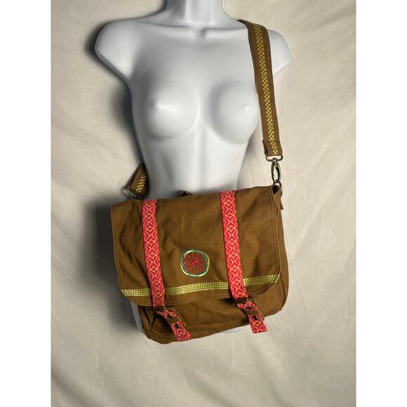 American Girl Messenger Bag Tan Pink Straps Crossbody Adjustable Girls Tote