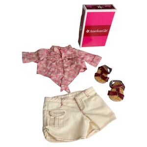 American Girl Nicki Tie Top & Shorts Outfit Shoes Nikki Doll Clothes No Belt Box