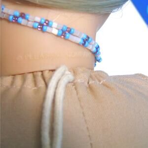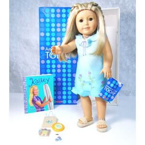 •Kailey Will Arrive To You In Her Original Meet Outfit: Her Ruffly Blue Sundress With Flower Embroidery & Appliques. Matching Blue Panties, Crocheted Sandals, Beach Bag With Embrodered Starfish, 3 Shells, Flying Disk, Necklace, Bracelet, Anklet Jewelry & Tide Book. Also, Kailey Paperback Book, Wrist Tag, Her American Girl Today Box (Box shows minor shelf wear consistent with age.