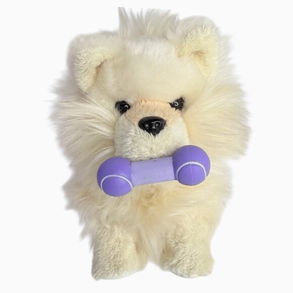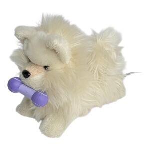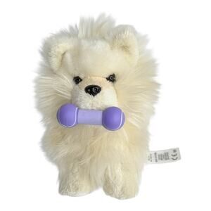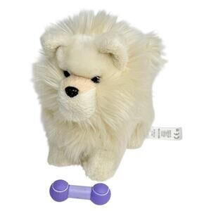 American Girl Doll Pet POMERANIAN PUPPY DOG + BONE Toy White Cream 6" Poseable Plush Stuffed Animal With Magnetic Mouth To Hold Toys And Bone By American Girl - NEW Condition With AG Labels!