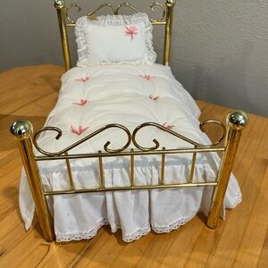 Retired American Girl Samantha doll set. Includes doll, bed, vanity, desk and trunk. Features original dress, nightgown, robe, Christmas dress and all accessories as pictured. Travel trunk is perfect for organizing accessories. Set up for hours of imaginative play.