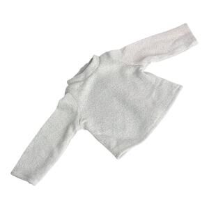 • Top: Silver long sleeved metallic turtleneck. Velcro's up the back.