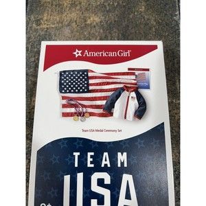 American Girl Team USA Medal Ceremony Kit For 18” Dolls! New! Jacket, Flag!