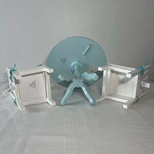 Enhance your American Girl doll's dining experience with this elegant Truly Me dining table and chairs set. Includes a white table, two chairs with cushions, perfect for imaginative play.