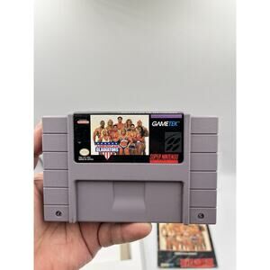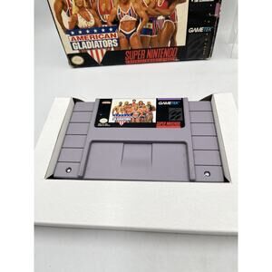 The product is American Gladiators for the SNES console, released in 1993 by GameTek. It is a sports game where players control gladiators in various athletic challenges. With its CIB manual and protective case included, this game offers a complete and tested experience for enthusiasts of retro gaming.