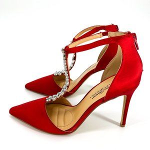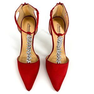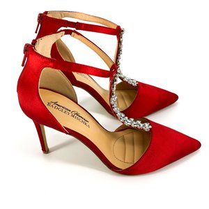 American Glamour Badgley Mischka Heels are satin stiletto heels with diamond rhinestone embellishments. These heels are quite stylish and elegant which you can style for both casual and formal wear. Style w/ suits.