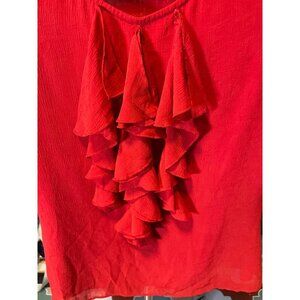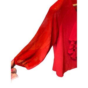 American Glamour Badgley Mischka Red Romantic Ruffle Puff Sleeve Top Sz S