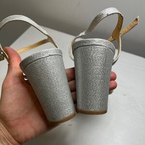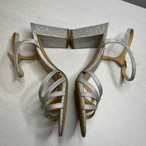 American Glamour/Badgley Mischka Silver Heels Sparkly Open Toe Sandal