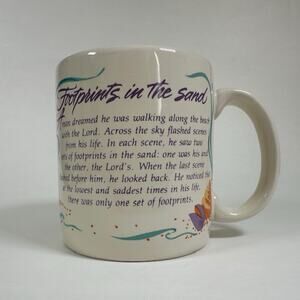 American Greetings Designers Collection Coffee Mug/Cup Footprints in the Sand 1986 VTG