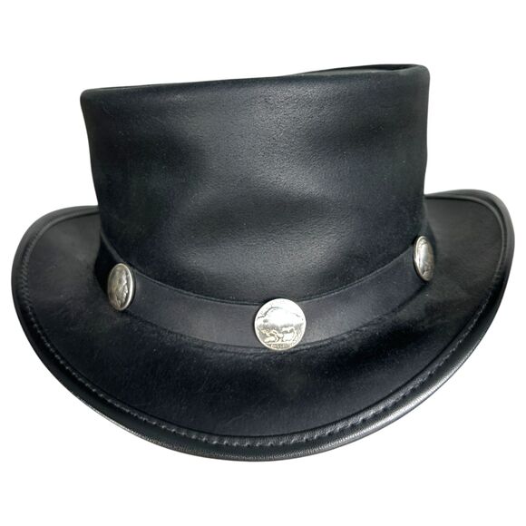 American Hat Makers El Dorado Voodo Buffalo Nickel Black Leather Top Hat XL
