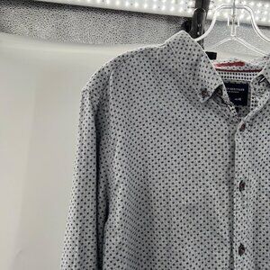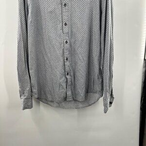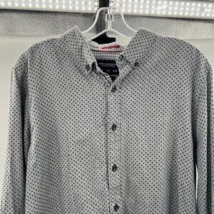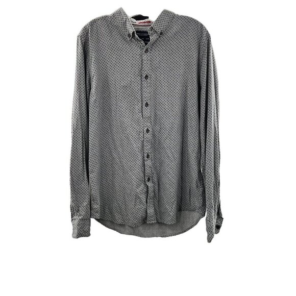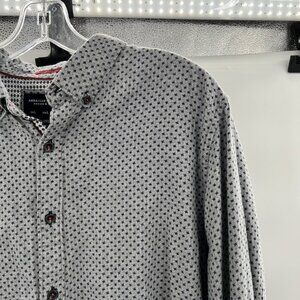 American Heritage Men's Long Sleeve Button Down Shirt Gray/Blue Print Large