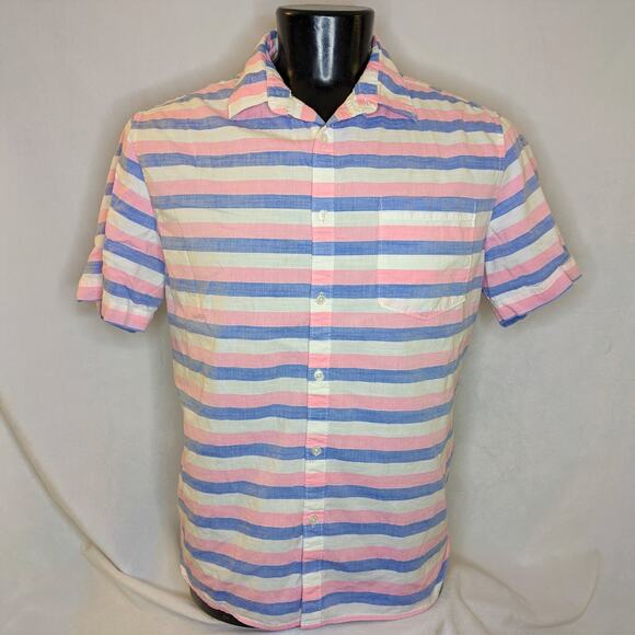 American Heritage Striped Shirt Men's XL Blue & Pink Casual