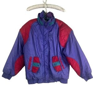 American High Y2K Women Medium Purple Red Nylon Retro Bomber 90s Jacket READ