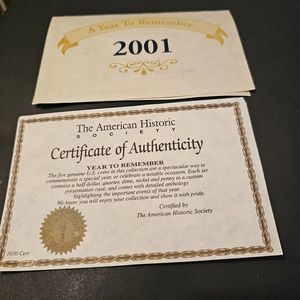 American Historic Society A Year To Remember 2001 Coins Certificates Etc