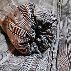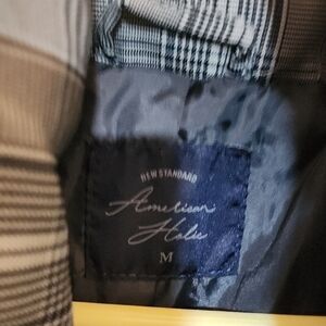 The American Holic Women's Puffer Quilted Jacket in size M is a stylish and practical outerwear option for winter. Made from polyester, this mid-length jacket features a plaid pattern, full zip closure, and quilted accents for added warmth and style. With multiple pockets for convenience and machine washable care instructions, this jacket is perfect for casual occasions and staying cozy in colder weather. The sleek black color and puffer jacket style make it a versatile piece for any wardrobe. In excellent condition.