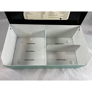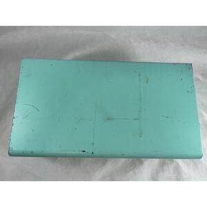 Offering this vintage aqua blue metal, two compartment recipe box with its original movable divider. No recipes are included.