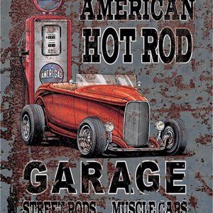 American Hot Rod Garage Roadster Street Rods Muscle Cars Classics Metal Tin Sign