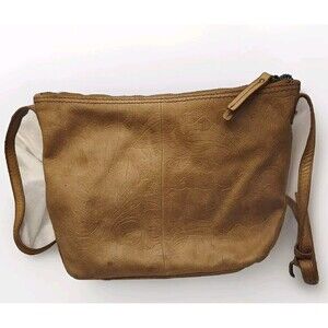 American Leather Co Austin Cafe Latte Tooled Embossed Tan Leather‎ Bag