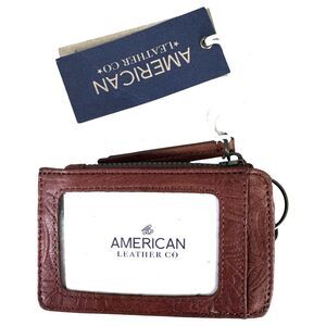 American Leather Co. Portland Brandy Etched Tooled Floral Leather Keychain Card Wallet NEW with Tags