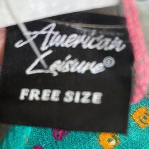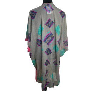 American Leisure Womens NWT Sheer Boho Graphic Panel Mod Print Kimono One Size