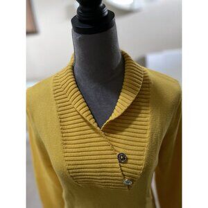 This American Living women's pullover chunky knit sweater in size M is a stylish and versatile addition to your wardrobe. Made from 100% cotton, this sweater features a solid yellow color, long sleeves with raglan sleeves, and a square neckline with a button accent. It is designed for relaxed fit and is machine washable for easy care. Perfect for travel, casual outings, or workwear, this sweater is a classic and retro-inspired piece that will keep you cozy in the winter and fall seasons.