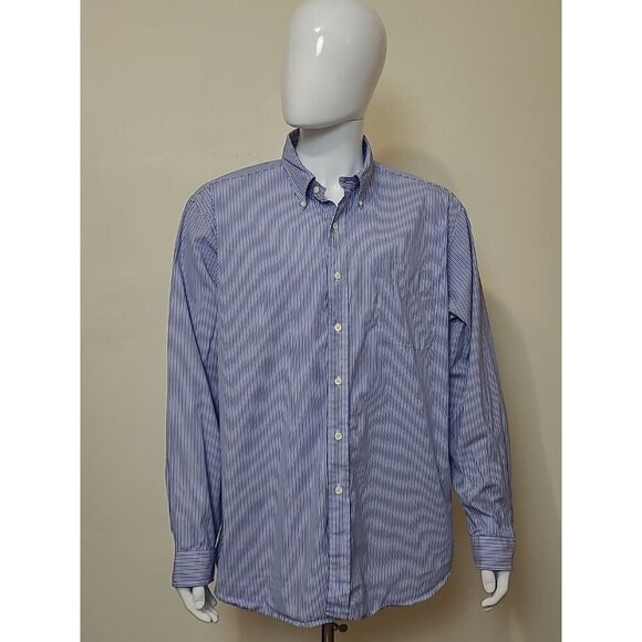 American Living Button Up Shirt Mens 2XL XXL Blue White Striped Pocket