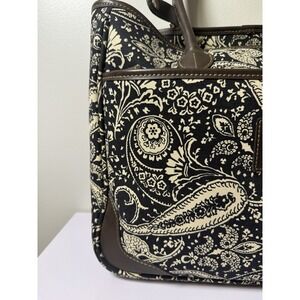 American Living Canvas Tote Brown Paisley 18x13 Luggage Sleeve Zipper Pockets