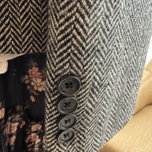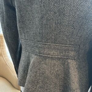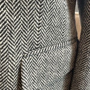 Like new wool/viscose women's jacket. Worn once or twice and been in the closet. Pit to pit is approx 16" (measure from back). Sleeve is 24-24 1/2". Length measured from back is 25". This is perfect for any occasion. Material is a classic pattern gives it a timeless look. The jacket is fully lined with 100% polyester.