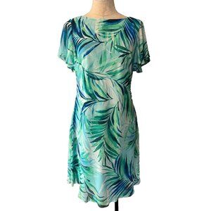 American Living Ralph Lauren Dress 12 Blue Green Short Flutter Sleeve Washable