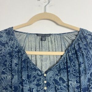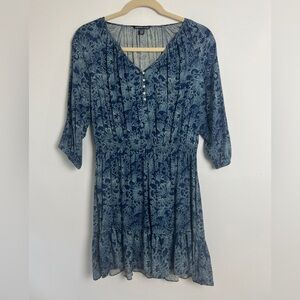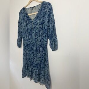 American Living Ralph Lauren Women's Blouson Dress XXL Blue Western Ruffle Hem