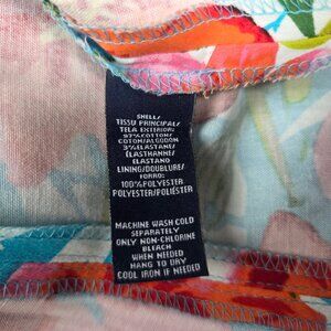 The American Living Sheath Dress in Women’s Size 4 features a colorful floral pattern with a sleeveless design and strappy sleeve type. Made from a comfortable cotton and spandex blend, this dress has a round neck and a zip closure. Perfect for travel, parties, or casual wear, this machine washable dress embodies a blend of classic and colorful themes that are suitable for summer and spring seasons. The sheath style of the dress adds a touch of elegance and sophistication to any occasion it is worn.