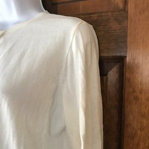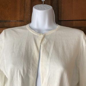 American Living; Shrug; White; Medium; Lightweight; Single Button Close; Long Sleeves; Banded Cuffs & Hem; 100% Cotton; Machine Wash & Dry Flat; Armpit to Armpit 20"; Armpit to Hem 10"; Sleeve 13"; Length 17"