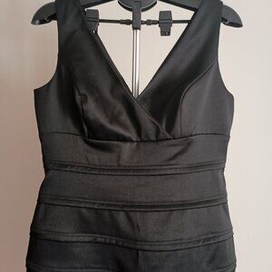 Features: Flattering layering detail on the bottom half, Cross over V-Neckline, elevated material look (heavier material), lined top / bust portion, back 5 inch hem vent