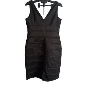 Elegant and timeless American Living black sleeveless v-neck dress featuring a flattering silhouette and layering detail. Perfect for dinner, weddings, or special occasions. A versatile little black dress that pairs beautifully with heels or flats. Excellent preowned condition — classic and polished.