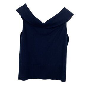 American Living Womens Navy Sleeveless Knit Top With Folded Collar Size Large