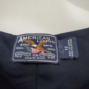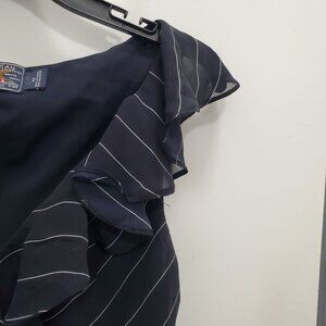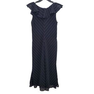American Living Women's Navy White Pinstripe Ruffle Front Flutter Midi Dress 12